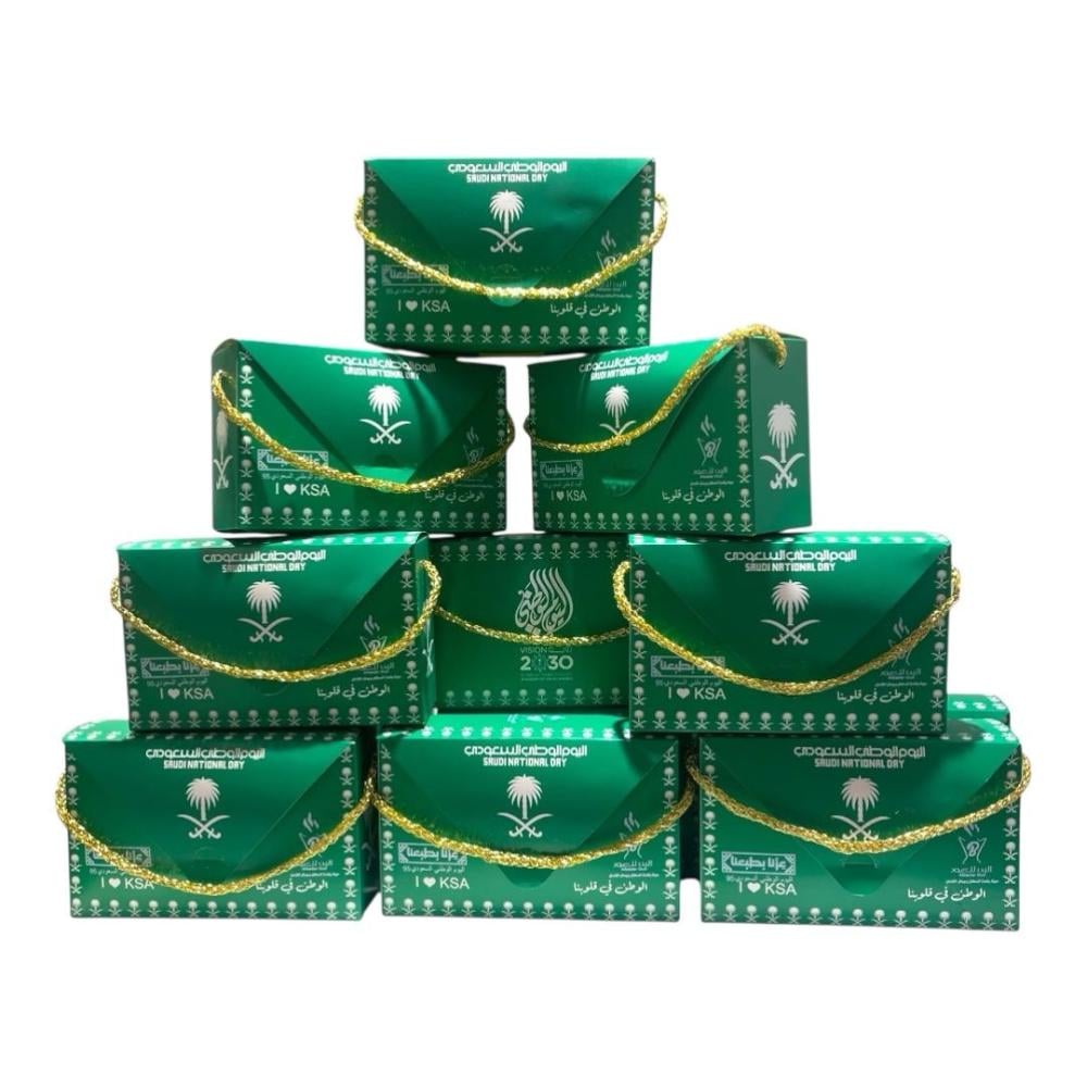 احتفل باليوم الوطني مع حقيبة ( البدر ) المميز الذي يجمع بين الأناقة والفائدة! عددها 12 حقيبة تحتوي كل حقيبة على: